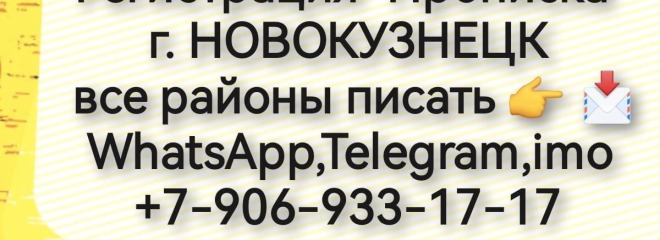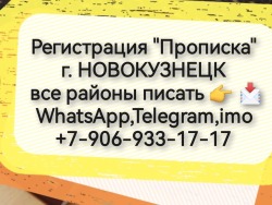 ПРОПИСКА г.НОВОКУЗНЕЦК Районы: Орджникидзевский, Новоильинский, Цетральный, Заводской, Кузнецкий, Куйбышевский, и другие города и районы Кемеровской области! Цена от 4 тр. Собственник, для граждан ???? ?? ПИСАТЬ (именно писать а не беспокоить звонками! Всё равно отвечу - пишите ват ЦАП!) ? ? WhatsApp,Telegram ,imo +7-906-933-17-17 https://ok.ru/group/70000042156476 https://t.me/n89069331717